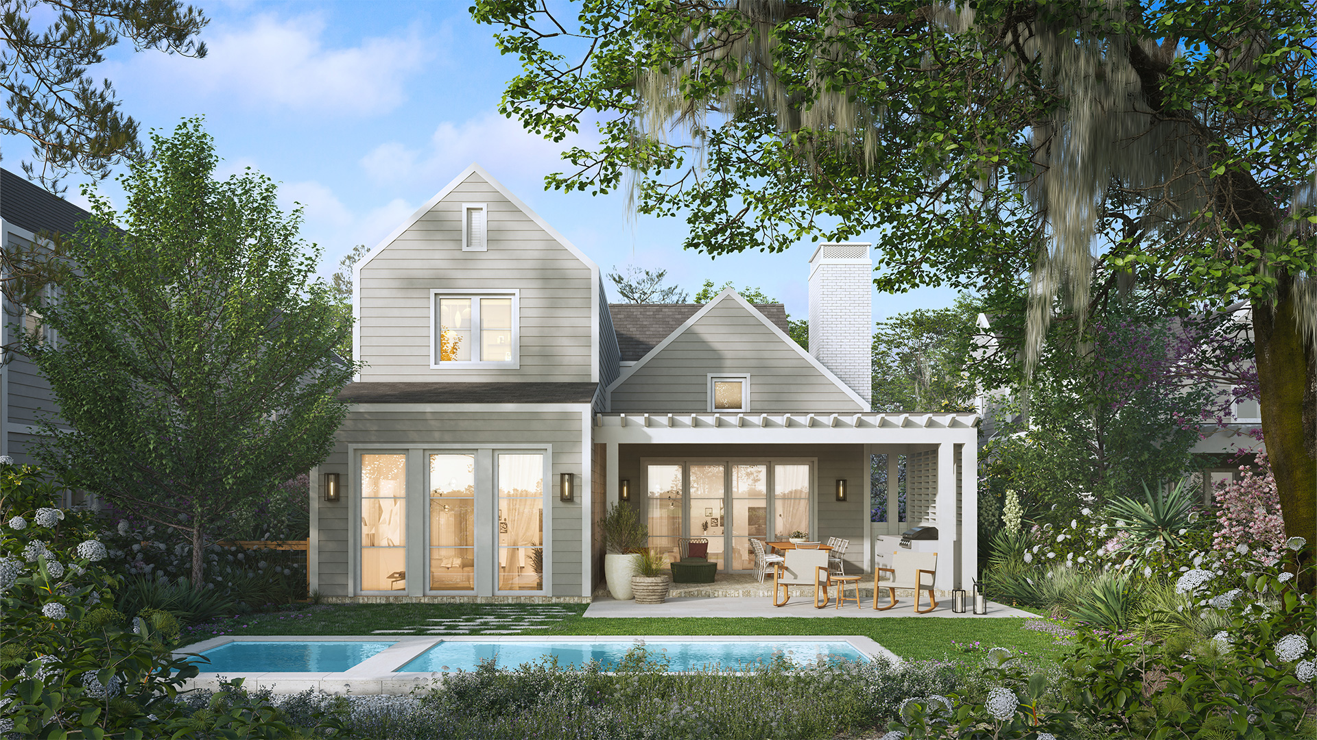 Fairway Homes combine modern luxury with vibrant Florida living. These two-story residences feature light-filled interiors, timeless finishes, private pools, and generous outdoor spaces overlooking a serene pond and lush greens. Designed for comfort, style, and connection, each home offers a private haven just steps from world-class golf.